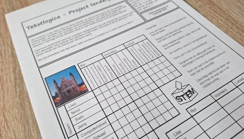 Lees verderDeze tekstlogica gaat over een antiekmarkt. Vier verkopers verkopen er hun antiek, van poppenhuis tot oude klok. Maar wie verkocht